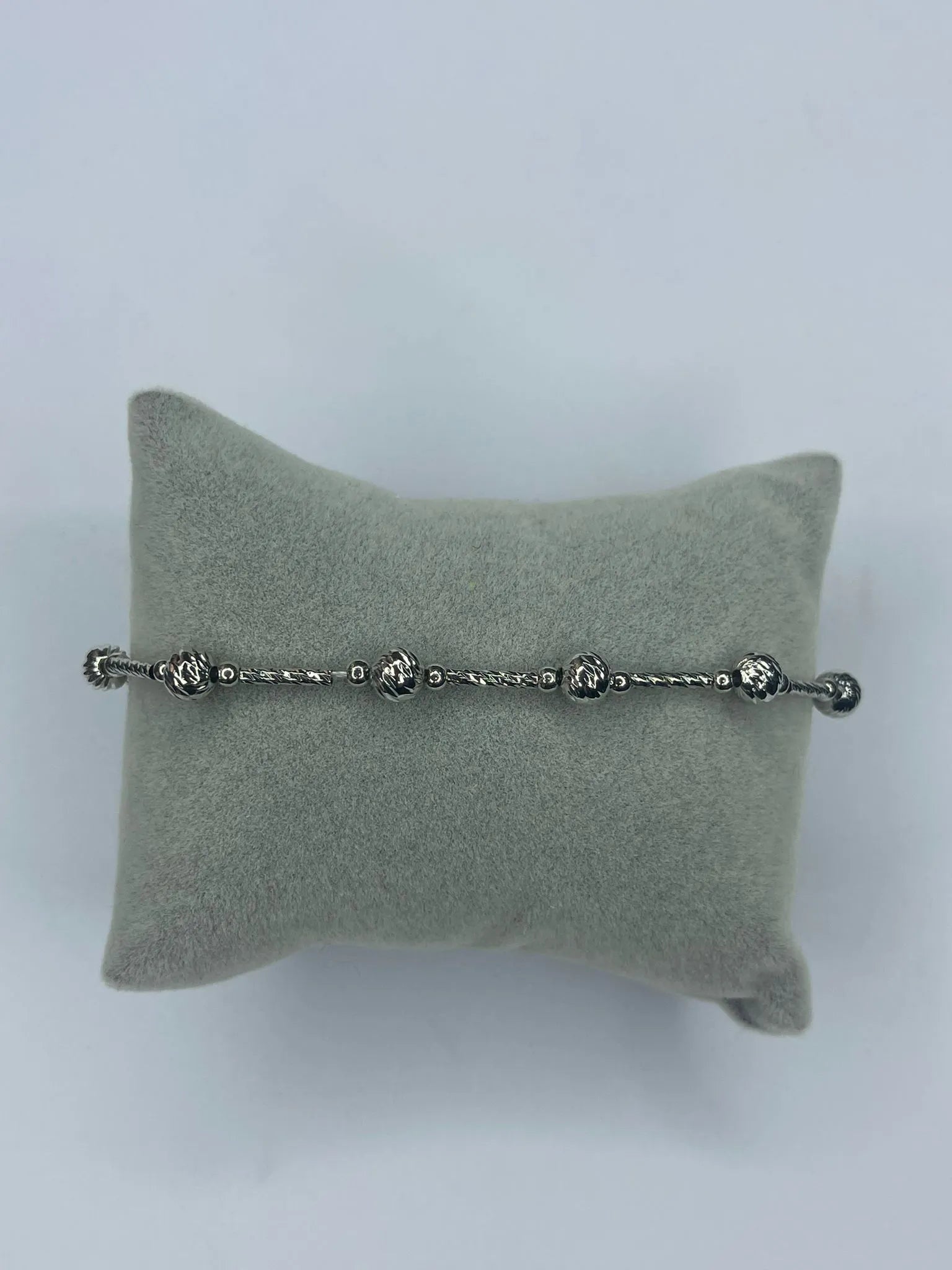 Bracciale elegante realizzato in acciaio inox di alta qualità, caratterizzato da sfere lucide che catturano la luce con raffinata semplicità. Il materiale resistente garantisce durabilità nel tempo, mantenendo intatto lo splendore argentato anche con l'uso quotidiano. Perfetto per chi ricerca un accessorio versatile che si adatta a qualsiasi occasione, dal casual all'elegante. Un pezzo essenziale che valorizza il polso con stile senza compromessi.
